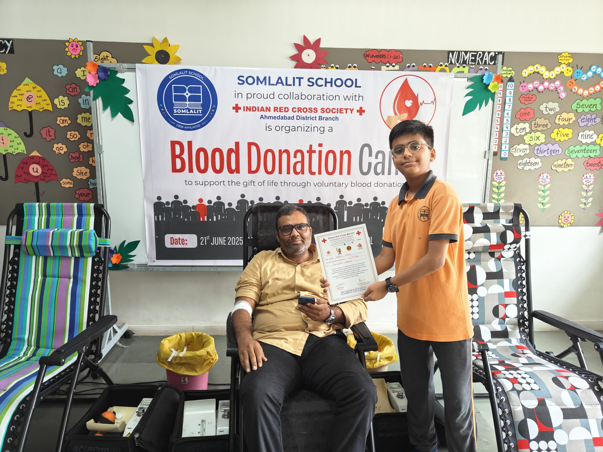 Som Lalit School, in collaboration with the Red Cross Society, hosted a heartfelt Blood Donation Camp. Teachers, parents and community members came together with one purpose—to save lives through the simple yet powerful act of donating blood.